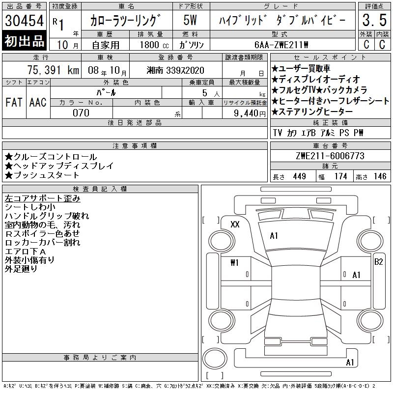TOYOTA COROLLA WAGON HYBRID DOUBLE BAI BE - лот 30454