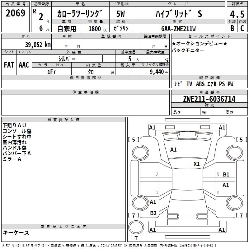 TOYOTA COROLLA WAGON HYBRID S - лот 2069