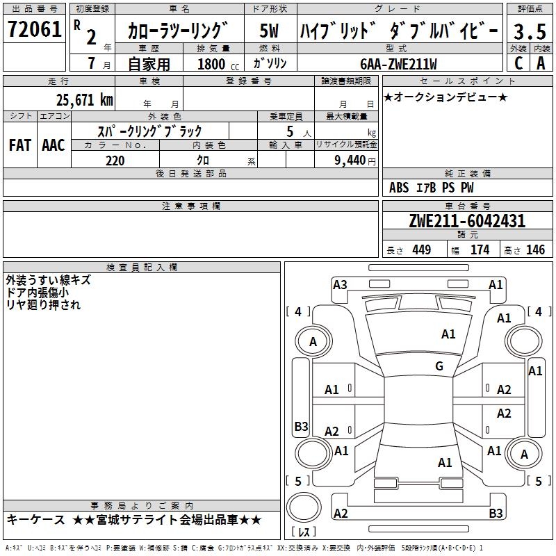 TOYOTA COROLLA WAGON HYBRID DOUBLE BAI BE - лот 72061