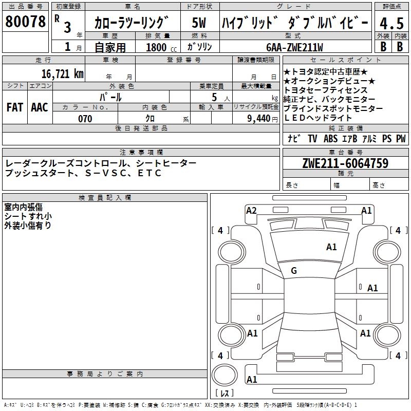 TOYOTA COROLLA WAGON HYBRID DOUBLE BAI BE - лот 80078