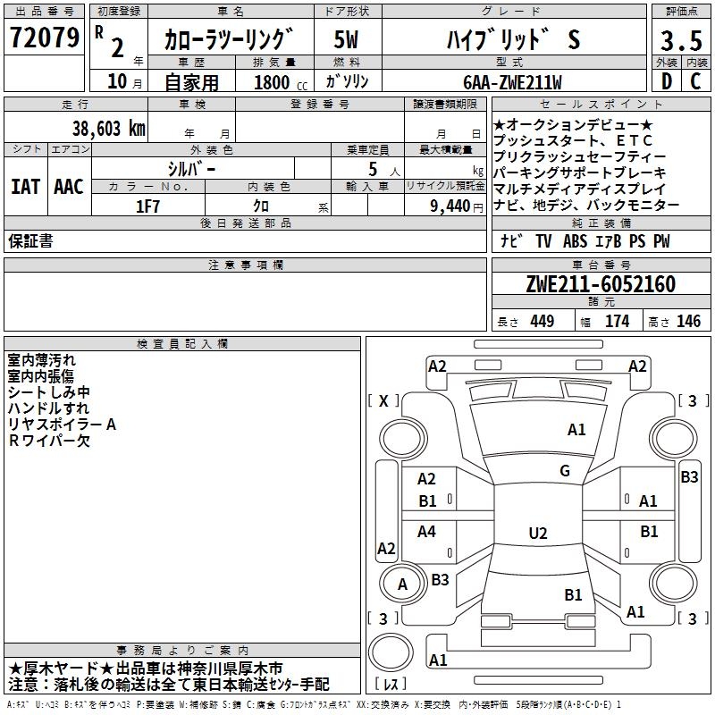TOYOTA COROLLA WAGON HYBRID S - лот 72079