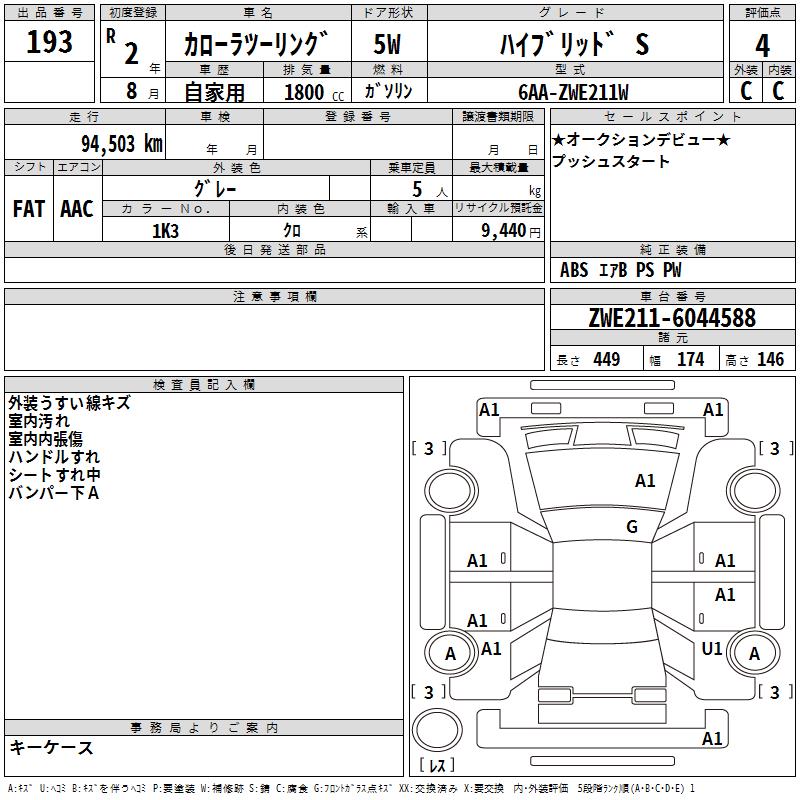 TOYOTA COROLLA WAGON HYBRID S - лот 193