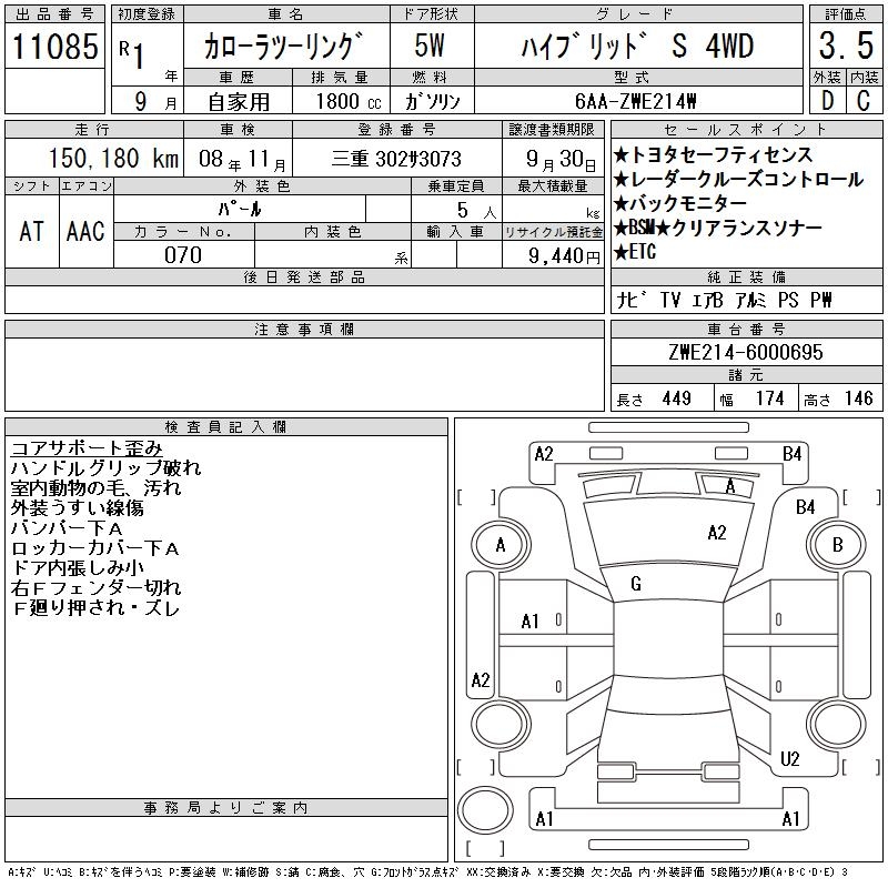TOYOTA COROLLA WAGON HYBRID S 4WD - лот 11085