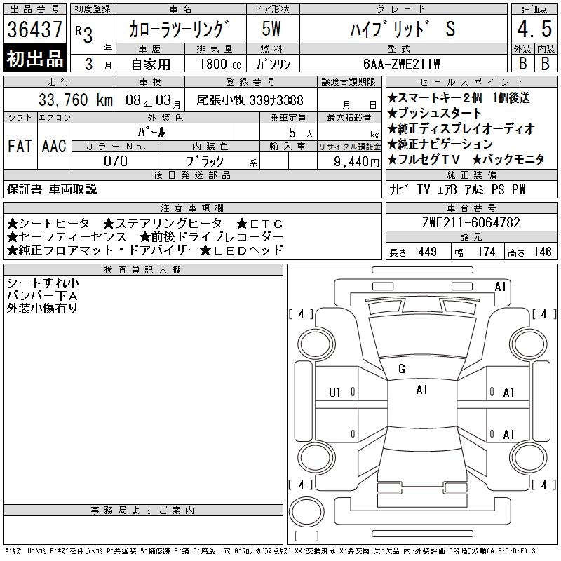 TOYOTA COROLLA WAGON HYBRID S - лот 36437