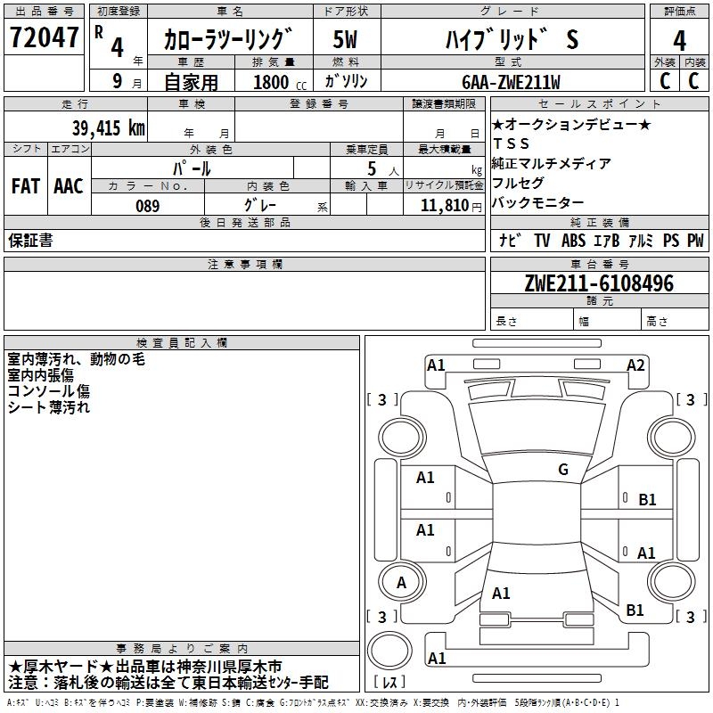 TOYOTA COROLLA WAGON HYBRID S - лот 72047