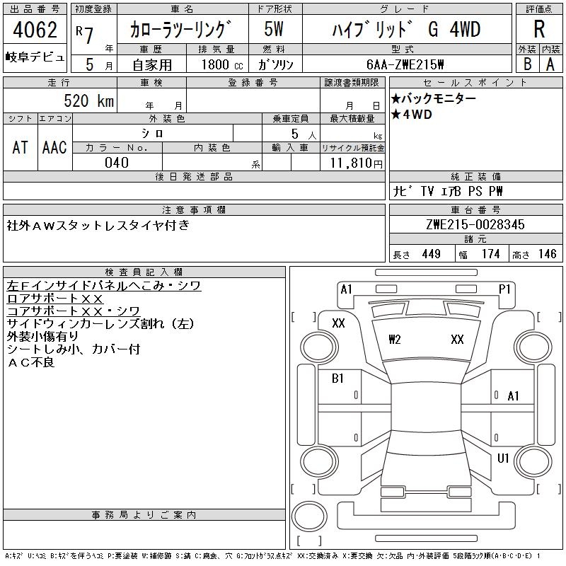 TOYOTA COROLLA WAGON HYBRID G 4WD - лот 4062