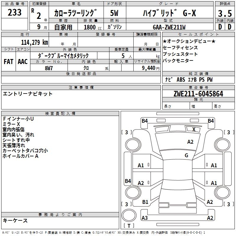 TOYOTA COROLLA WAGON HYBRID G-X - лот 233