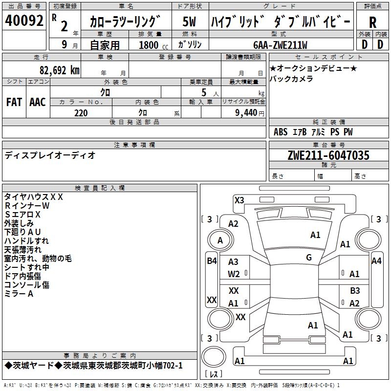 TOYOTA COROLLA WAGON HYBRID DOUBLE BAI BE - лот 40092