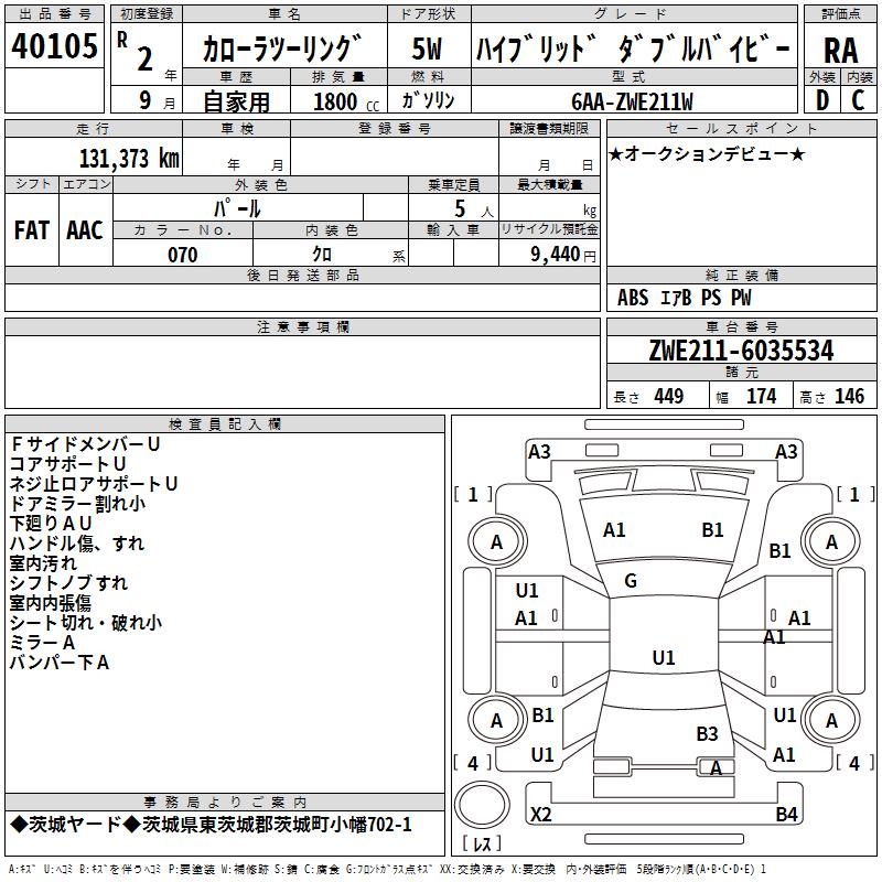 TOYOTA COROLLA WAGON HYBRID DOUBLE BAI BE - лот 40105