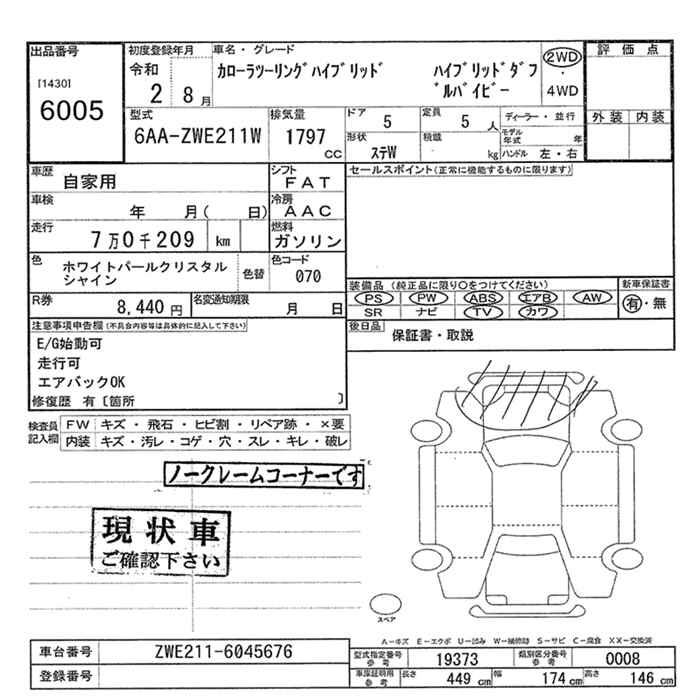 TOYOTA COROLLA WAGON TOURING HYBRID WXB - лот 6005