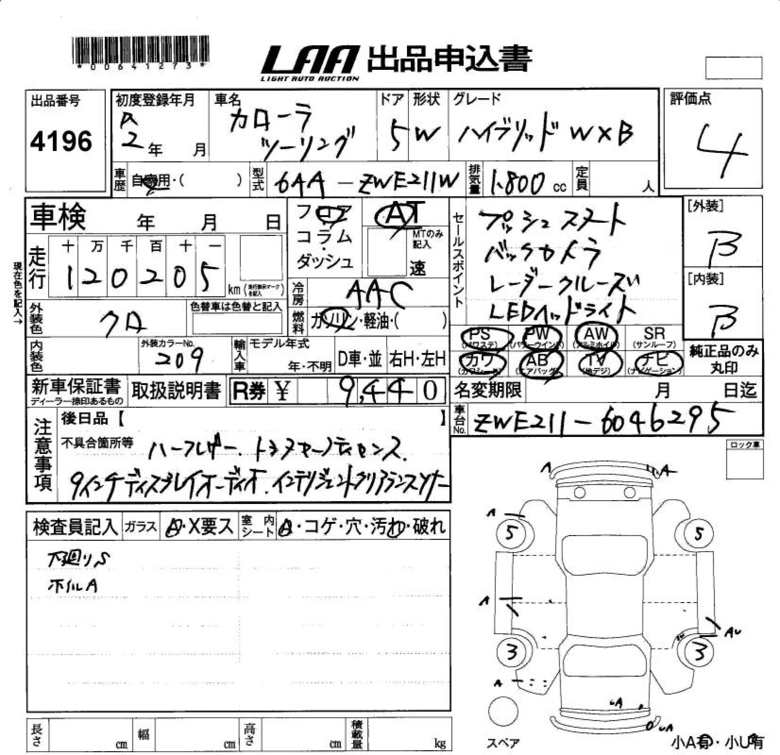 TOYOTA COROLLA WAGON HYBRID DOUBLE BAI BE - лот 4196