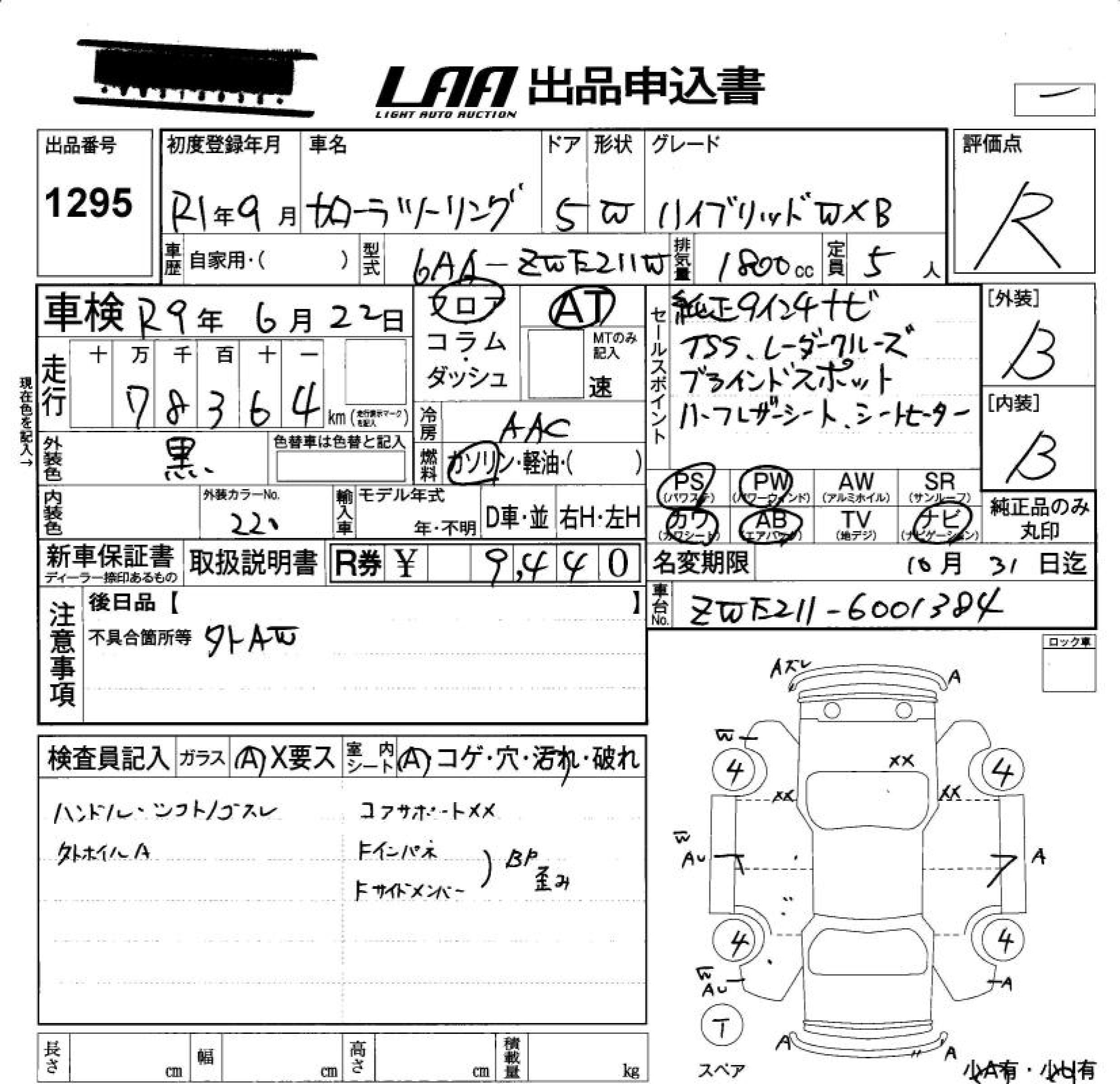 TOYOTA COROLLA WAGON HYBRID DOUBLE BAI BE - лот 1295