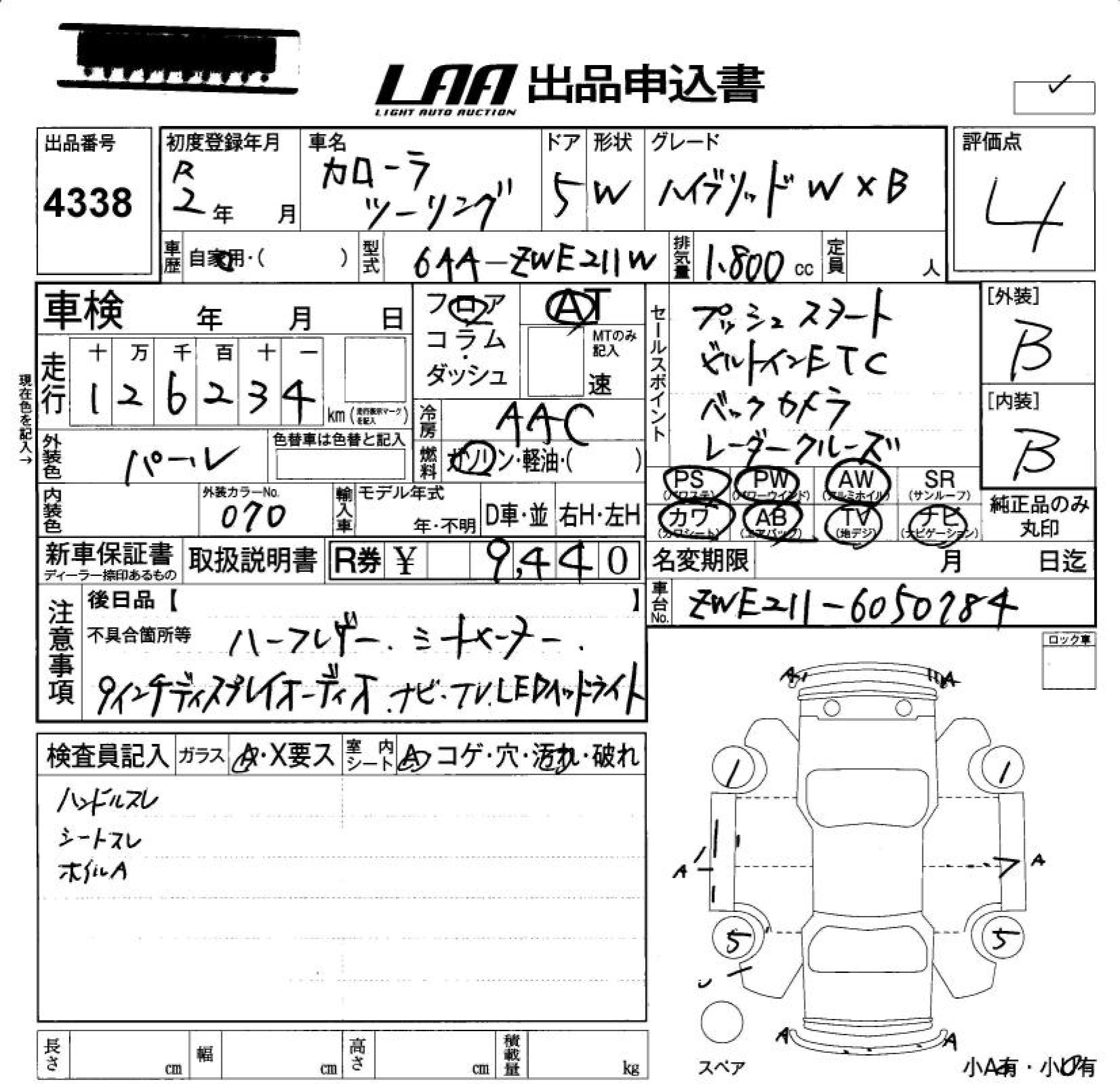TOYOTA COROLLA WAGON HYBRID DOUBLE BAI BE - лот 4338