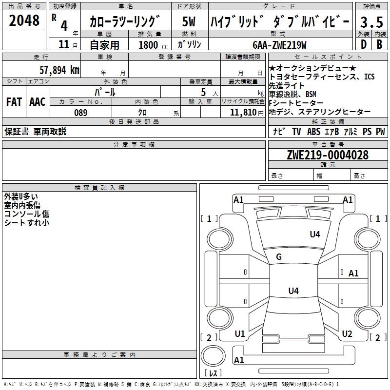 TOYOTA COROLLA WAGON HYBRID DOUBLE BAI BE - лот 2048