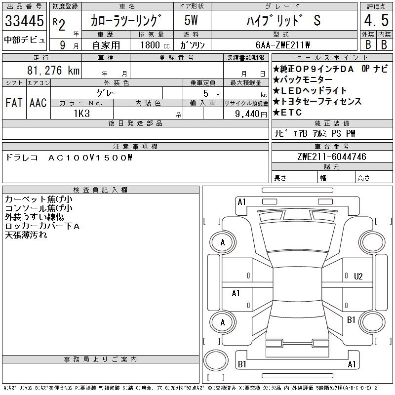 TOYOTA COROLLA WAGON HYBRID S - лот 33445