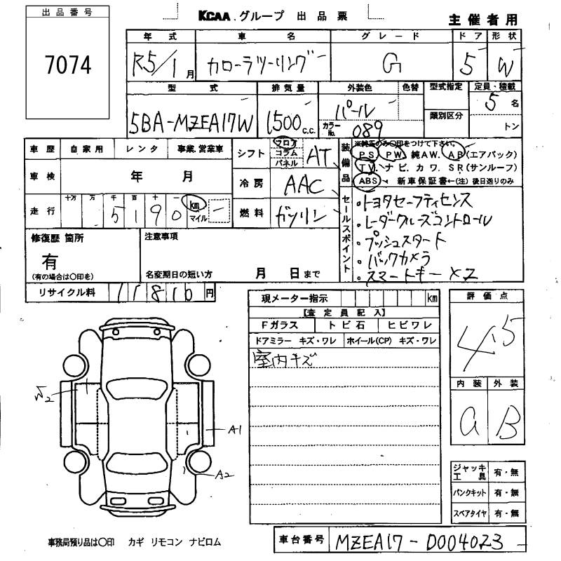 TOYOTA COROLLA WAGON G - лот 7074