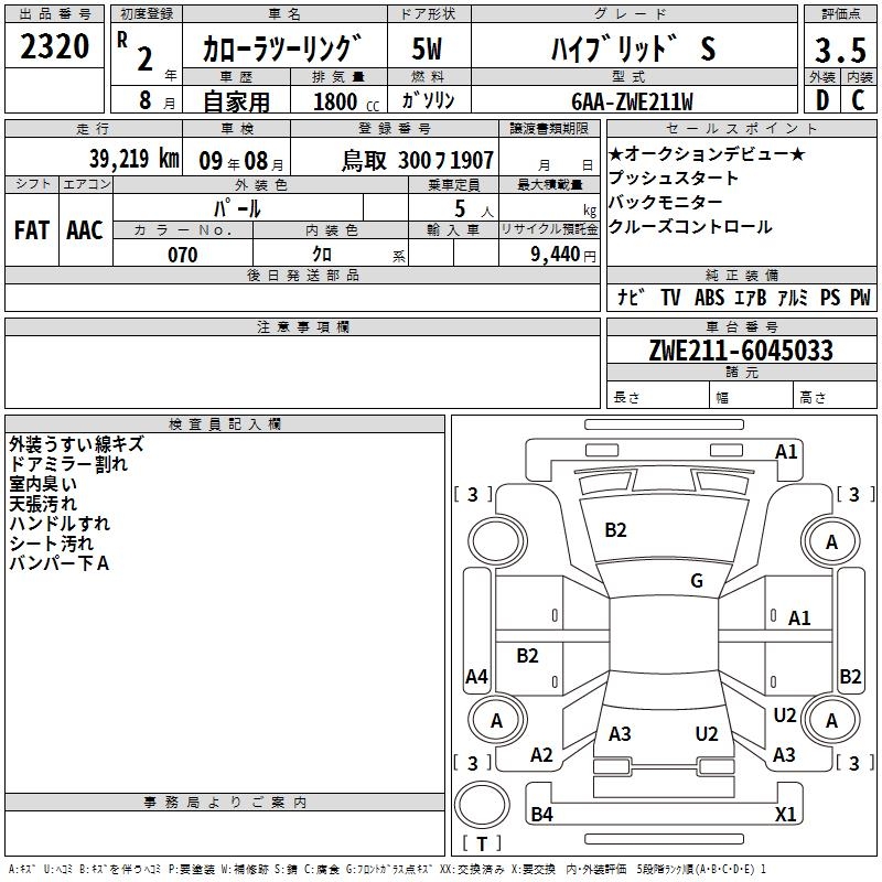 TOYOTA COROLLA WAGON HYBRID S - лот 2320