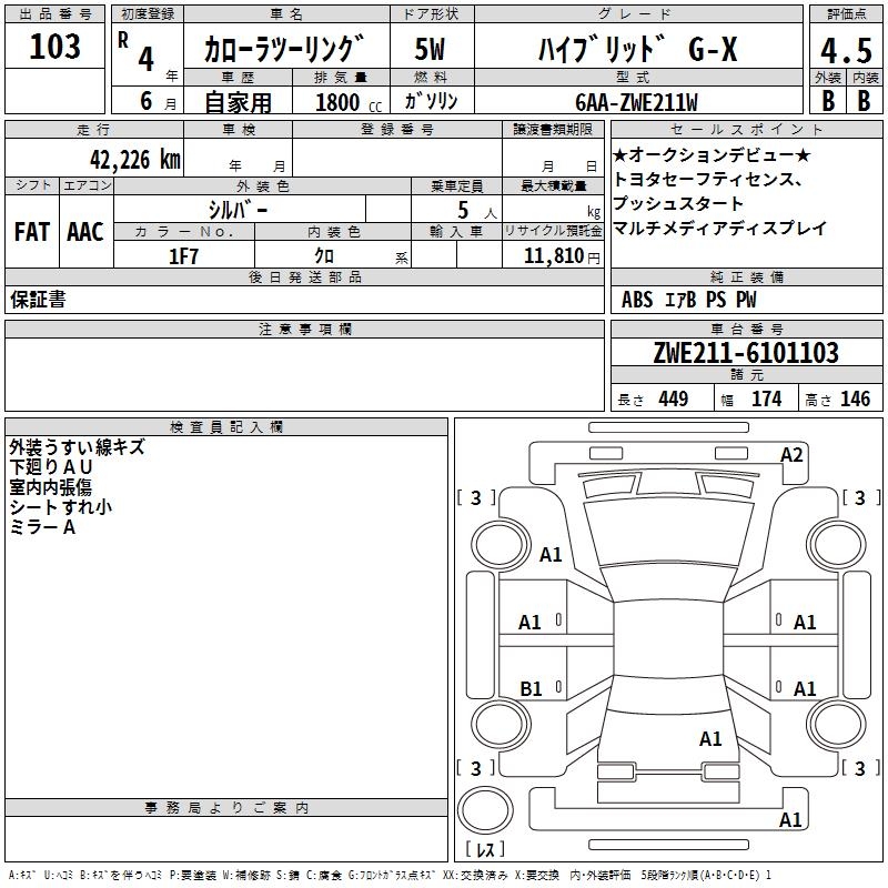 TOYOTA COROLLA WAGON HYBRID G-X - лот 103