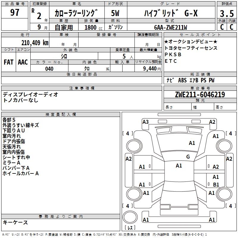 TOYOTA COROLLA WAGON HYBRID G-X - лот 97