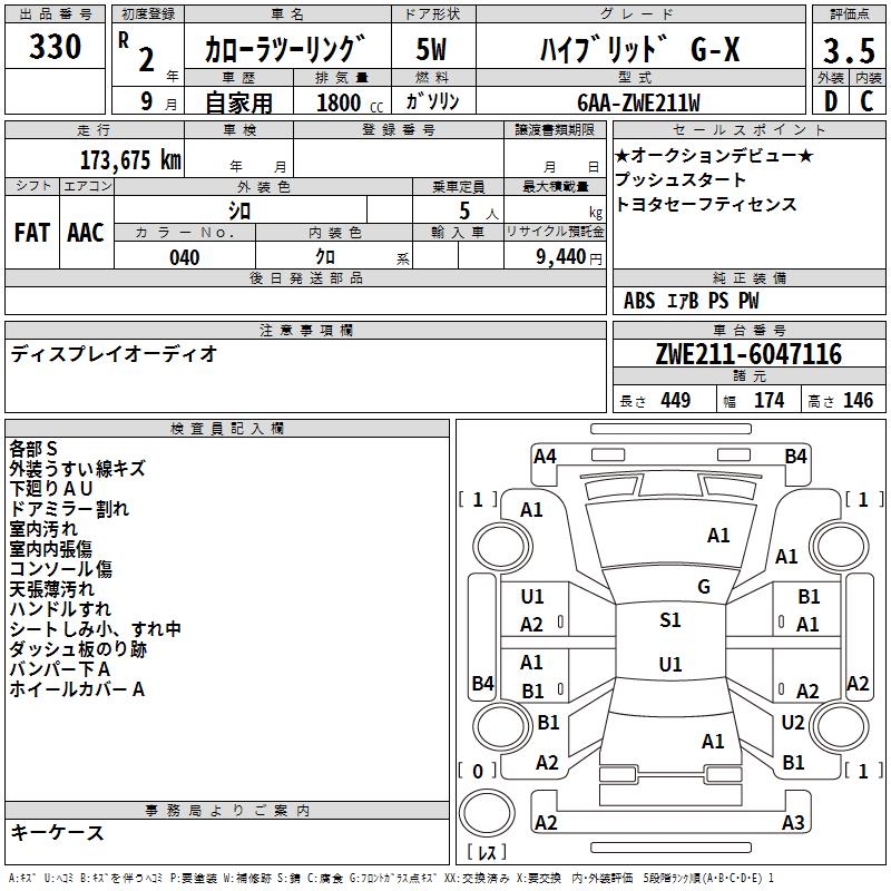 TOYOTA COROLLA WAGON HYBRID G-X - лот 330