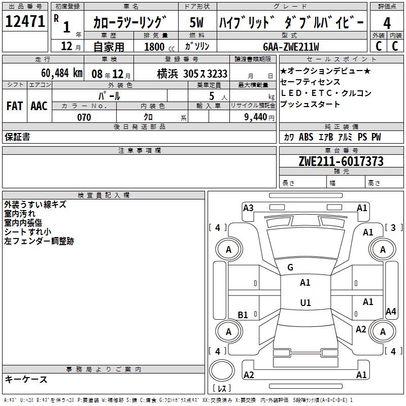 TOYOTA COROLLA WAGON HYBRID DOUBLE BAI BE - лот 12471