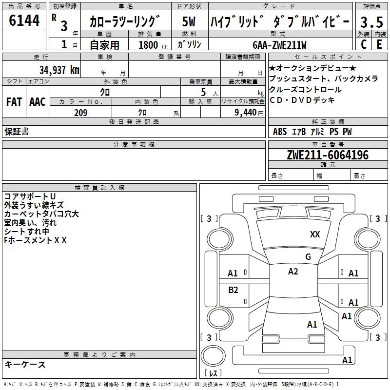TOYOTA COROLLA WAGON HYBRID DOUBLE BAI BE - лот 6144