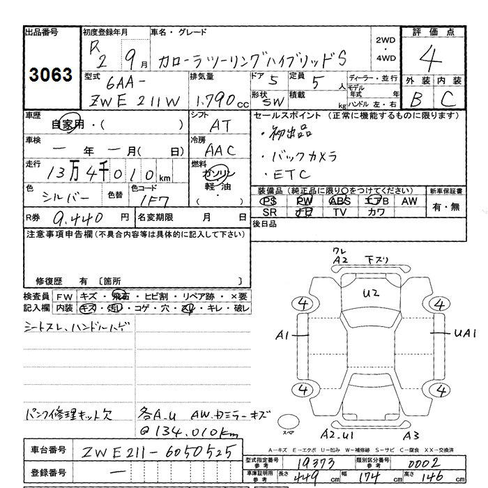 TOYOTA COROLLA WAGON HYBRID S - лот 3063