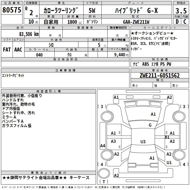 TOYOTA COROLLA WAGON HYBRID G-X - лот 80575