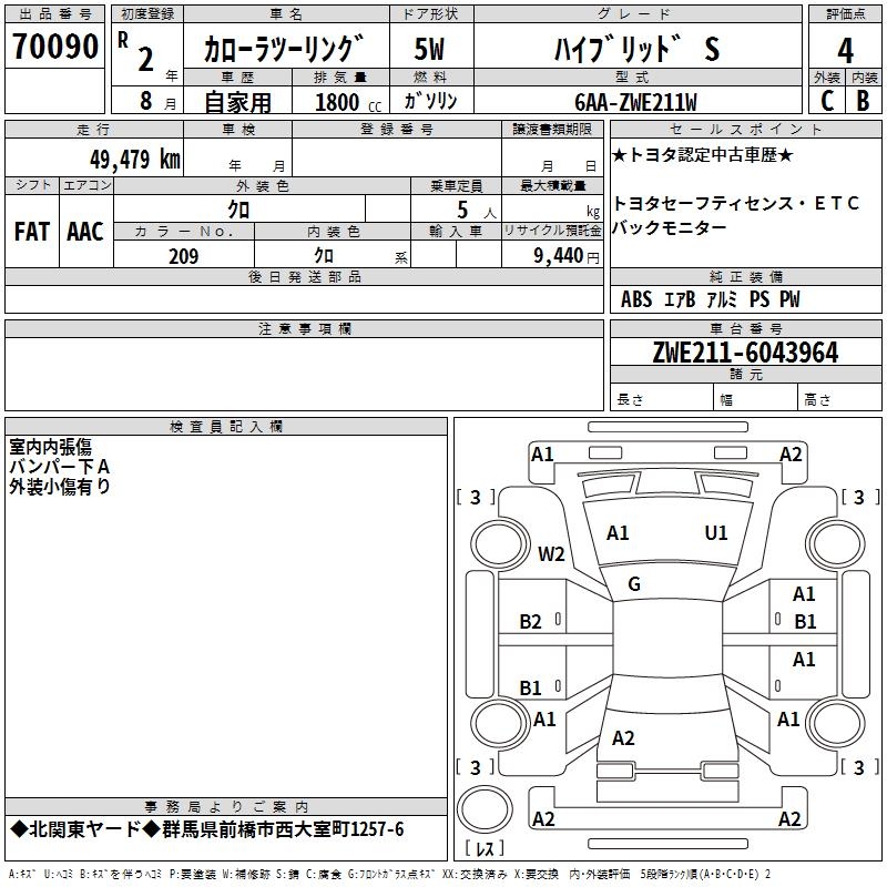 TOYOTA COROLLA WAGON HYBRID S - лот 70090