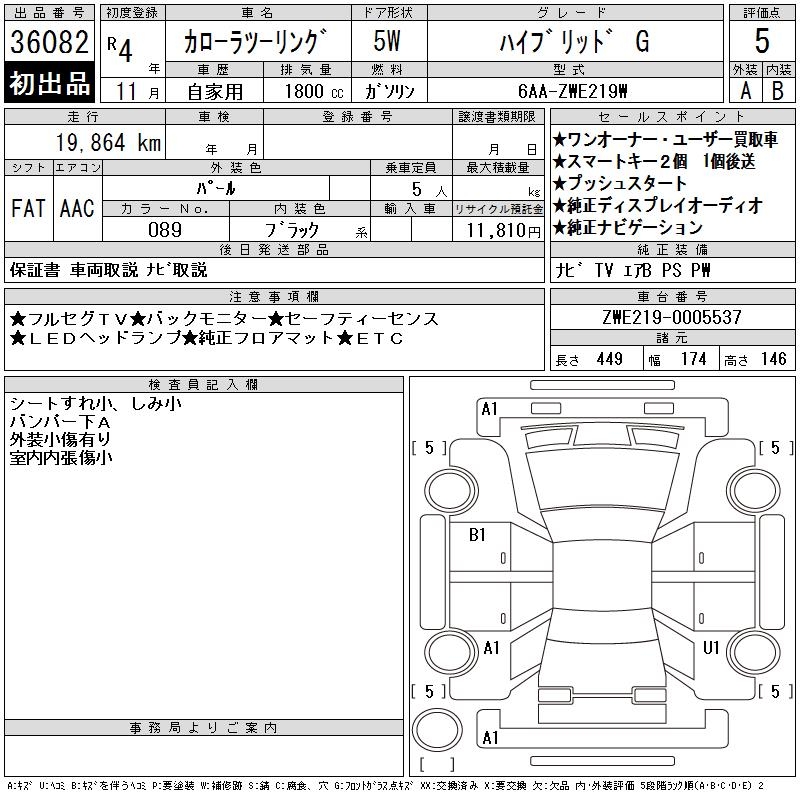 TOYOTA COROLLA WAGON HYBRID G - лот 36082