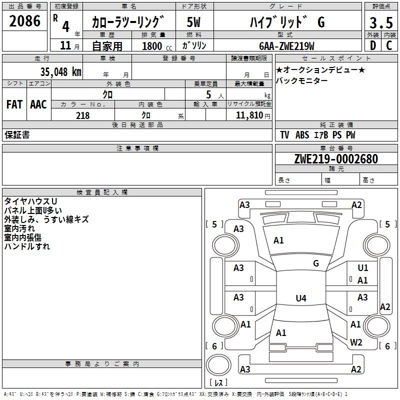 TOYOTA COROLLA WAGON HYBRID G - лот 2086