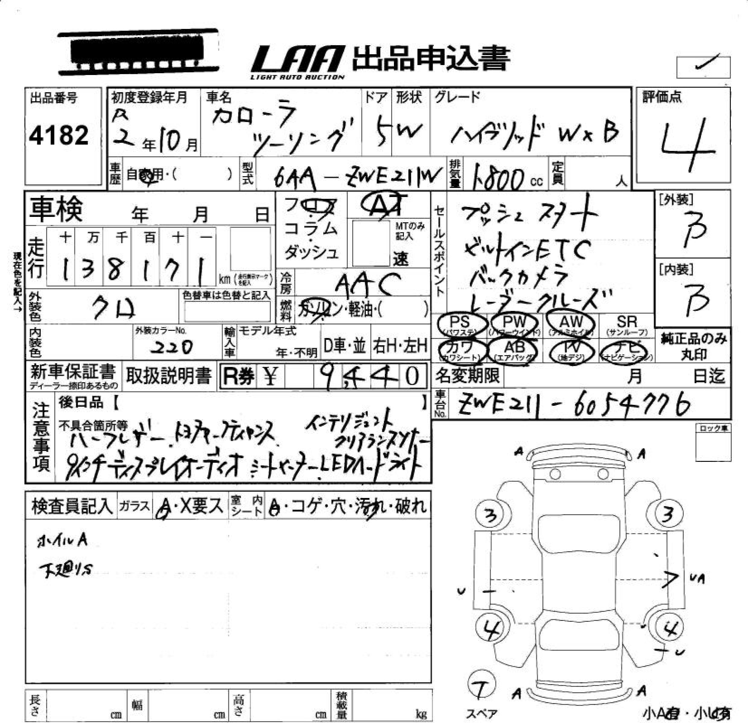 TOYOTA COROLLA WAGON HYBRID DOUBLE BAI BE - лот 4182