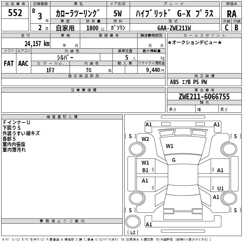 TOYOTA COROLLA WAGON HYBRID G-X PLUS - лот 552