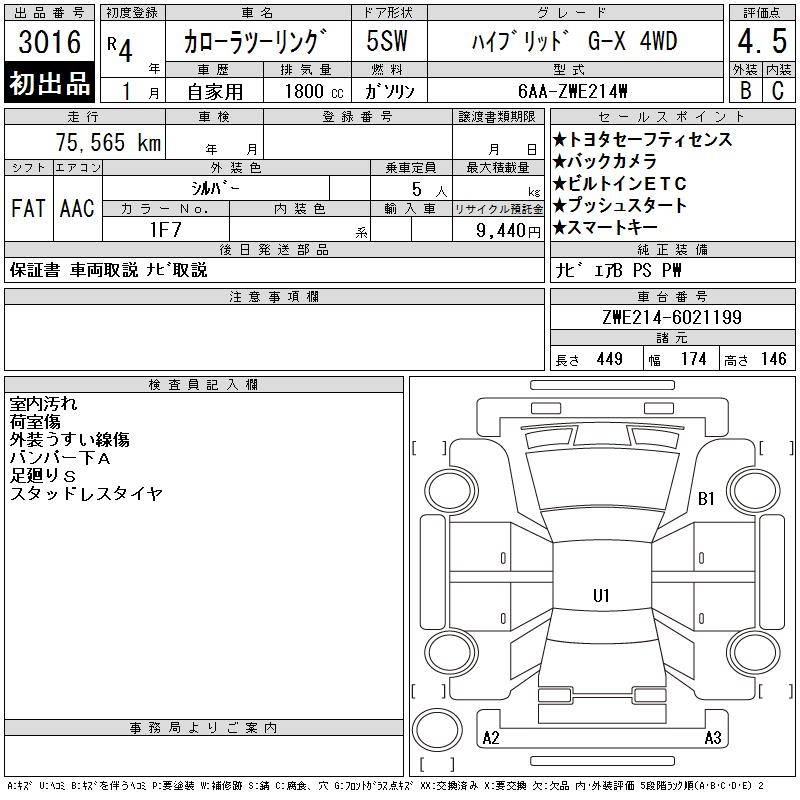 TOYOTA COROLLA WAGON HYBRID G-X 4WD - лот 3016