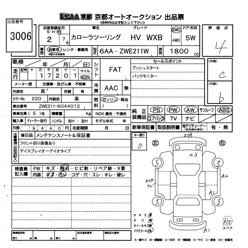 TOYOTA COROLLA WAGON HYBRID DOUBLE BAI BE - лот 3006