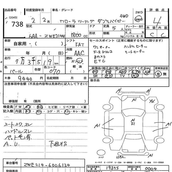 TOYOTA COROLLA WAGON 4WD HYBRID WXB - лот 738