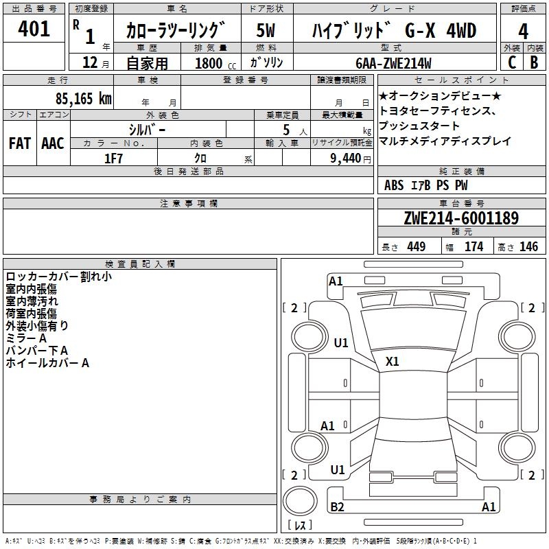 TOYOTA COROLLA WAGON HYBRID G-X 4WD - лот 401