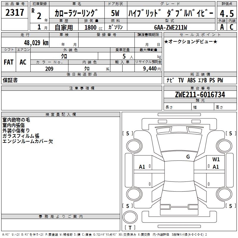 TOYOTA COROLLA WAGON HYBRID DOUBLE BAI BE - лот 2317