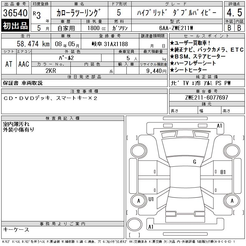 TOYOTA COROLLA WAGON HYBRID DOUBLE BAI BE - лот 36540