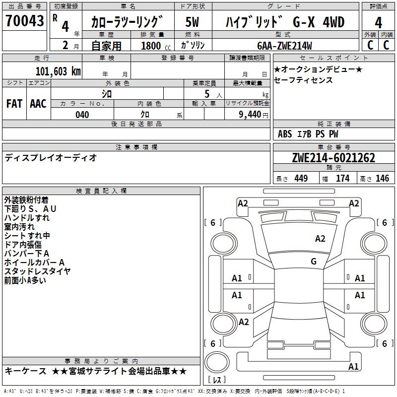 TOYOTA COROLLA WAGON HYBRID G-X 4WD - лот 70043