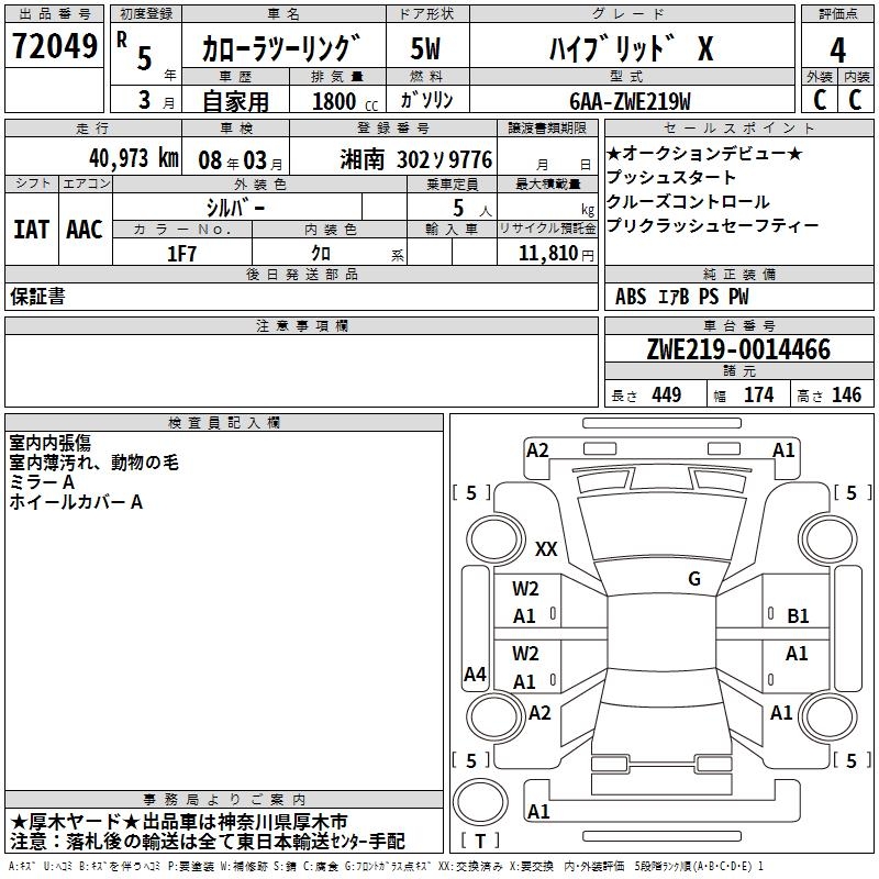 TOYOTA COROLLA WAGON HYBRID X - лот 72049