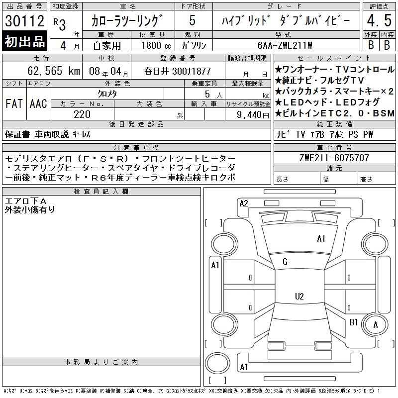 TOYOTA COROLLA WAGON HYBRID DOUBLE BAI BE - лот 30112