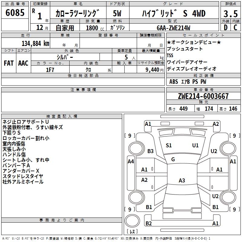 TOYOTA COROLLA WAGON HYBRID S 4WD - лот 6085