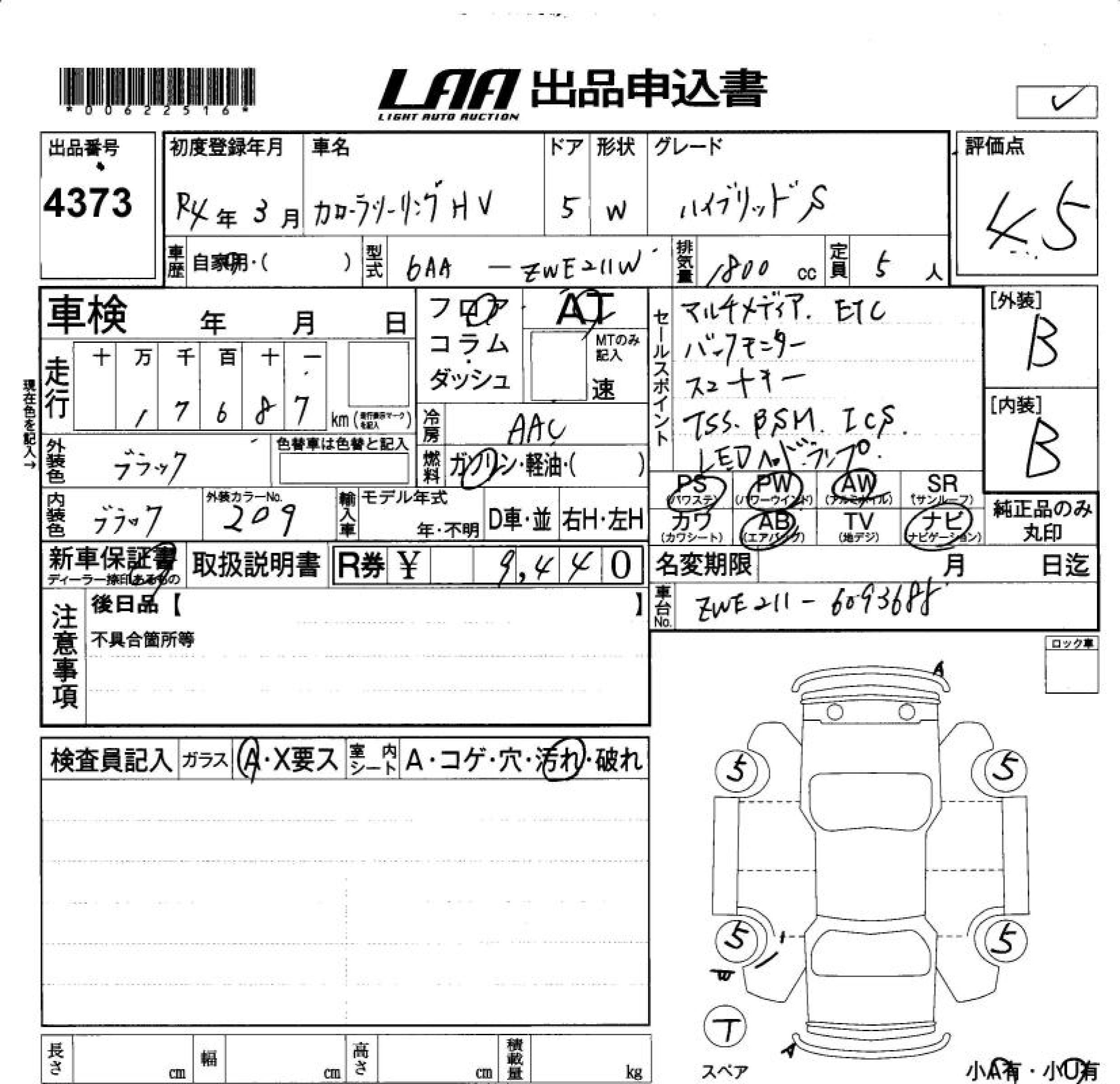 TOYOTA COROLLA WAGON HYBRID S - лот 4373