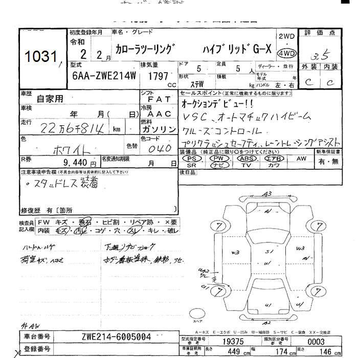 TOYOTA COROLLA WAGON HYBRID G-X Four - лот 1031