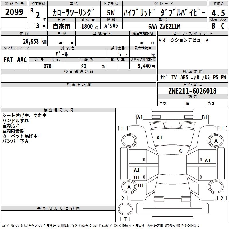TOYOTA COROLLA WAGON HYBRID DOUBLE BAI BE - лот 2099