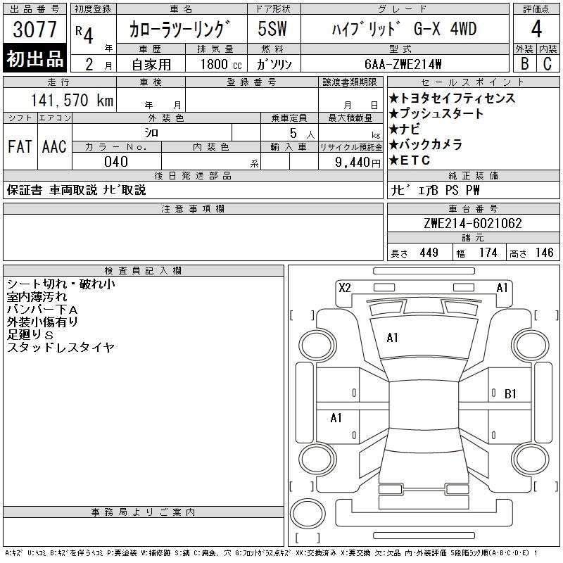TOYOTA COROLLA WAGON HYBRID G-X 4WD - лот 3077