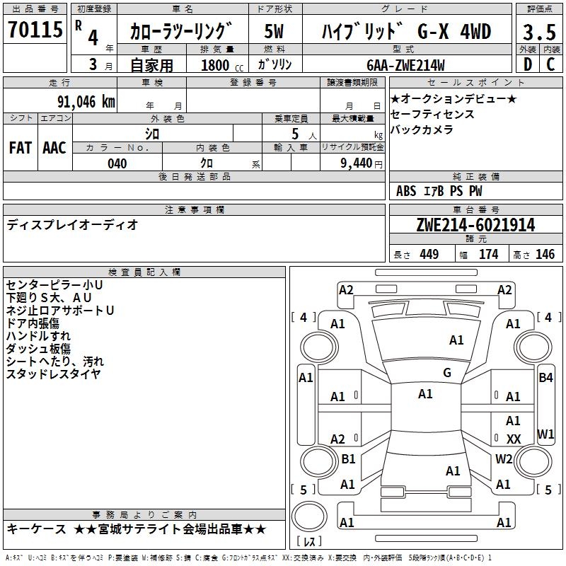 TOYOTA COROLLA WAGON HYBRID G-X 4WD - лот 70115