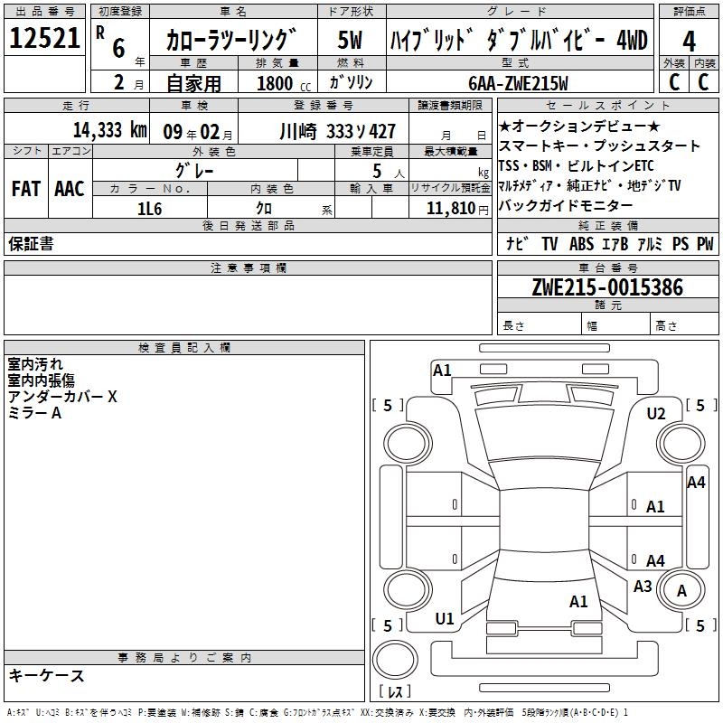 TOYOTA COROLLA WAGON HYBRID DOUBLE BA4WD - лот 12521