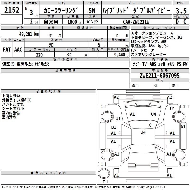 TOYOTA COROLLA WAGON HYBRID DOUBLE BAI BE - лот 2152